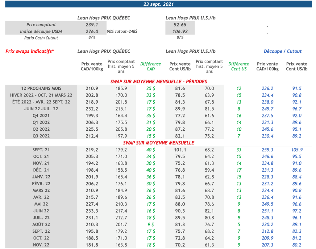 • 24 septembre : USDA — Rapport trimestriel Hogs & Pigs