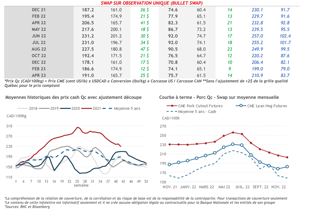 • Les ventes nettes à l'exportation de porc cette semaine sont de 22 300 TM, soit 8 900 TM sous la moyenne 2021 à date et 11 800 TM sous celle de 2020. Le Mexique a été le principal acheteur avec 10 200 TM.