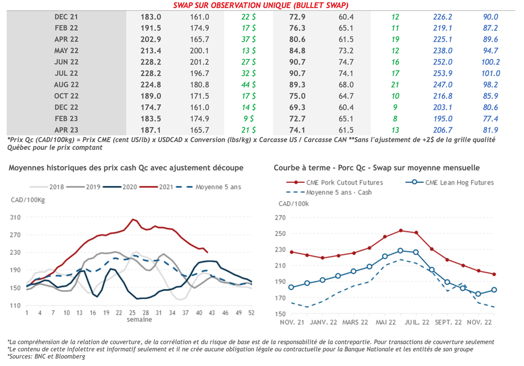 • Tous les contrats ont fait des pertes significatives hier, en raison de la faible demande de produits porcins et de la faiblesse générale des commodités, selon Bloomberg. Le contrat actif (Dec-21) est celui qui a perdu le plus avec une perte de 2,825 cents US/lb.