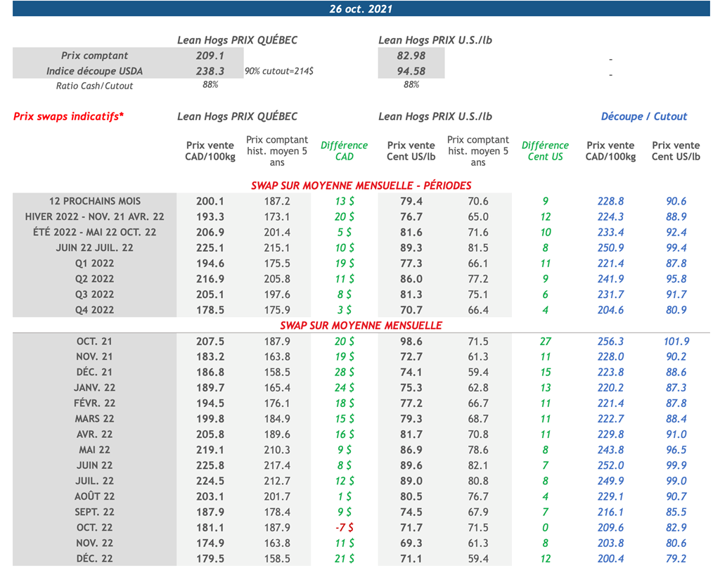 • 28 octobre : USDA — Ventes nettes d’exportations pour les grains et le porc