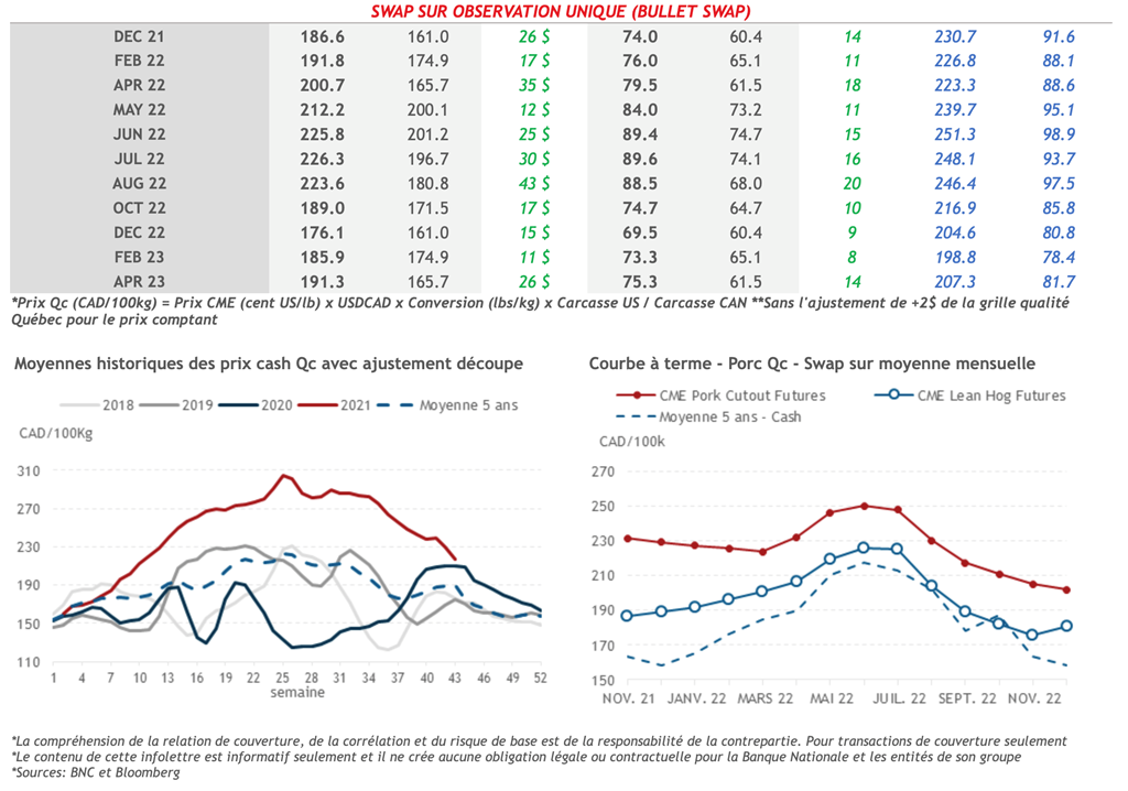 • 4 novembre : USDA — Ventes nettes d’exportations pour les grains et le porc