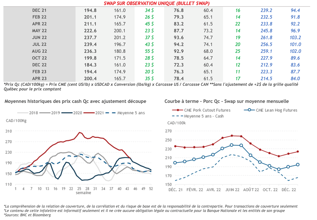 • À ce qui a trait de la découpe, l’histoire était un peu différente. L’indice de la découpe de porc U.S. est descendu de 2,75 cents US/lb à 97,69 cents US/lb, sous la pression du jambon qui est descendu de 17,54 cents US/lb. La hausse du flanc et de la longe ont limité l’ampleur de la perte. Ce matin, l'indice de porc Cash CME se situe à 78,32 cents US/lb.
