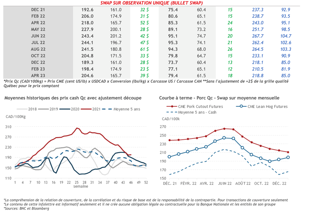 • L'indice de découpe du porc américain a également affiché une perte, dans une fourchette similaire à celle des contrats, de 0,78 cent US/lb et se situe maintenant à 93,93 cents US/lb. C'était au tour du flanc de faire pression sur le cutout avec une perte de 8,64 cents US/lb, pour atteindre 151,57 cents US/lb. Ce matin, l'indice au comptant du porc CME se situe à 76,17 cents US/lb (-0,51).