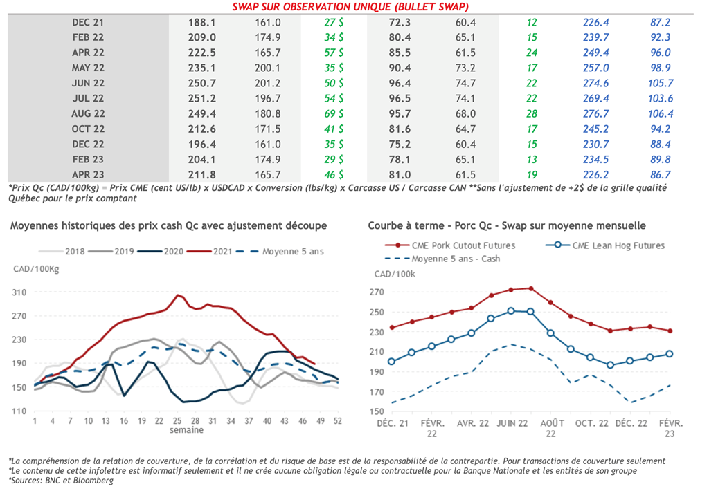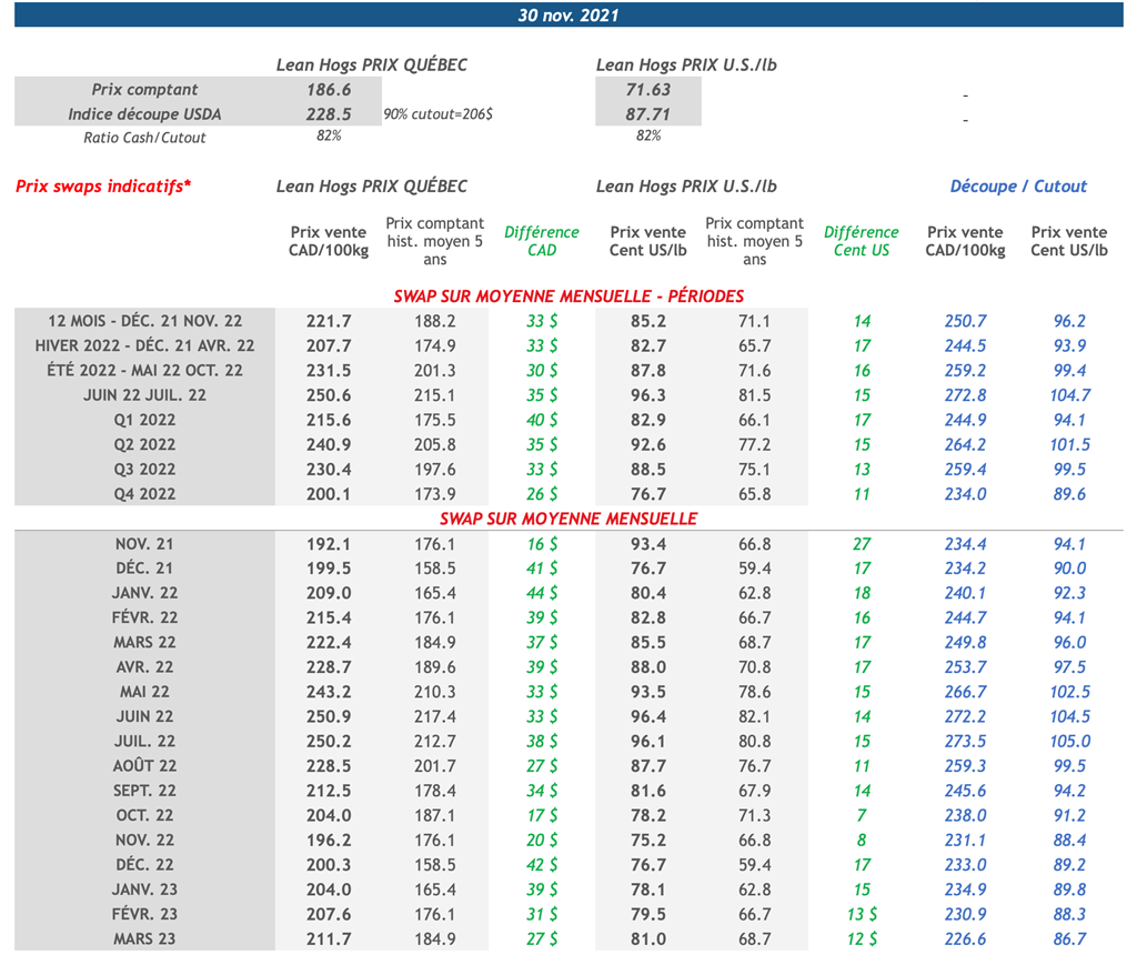 • L’indice de découpe américaine du porc était aussi de la partie avec un gain de 3,73 cents US/lb, s’établissant à 87,71 cents US/lb. Le jambon était l’un des responsables de ce gain, avec une hausse de 7,05 cents US/lb. Ce matin, l’indice au comptant du porc se situe à 71,63 cents US/lb.