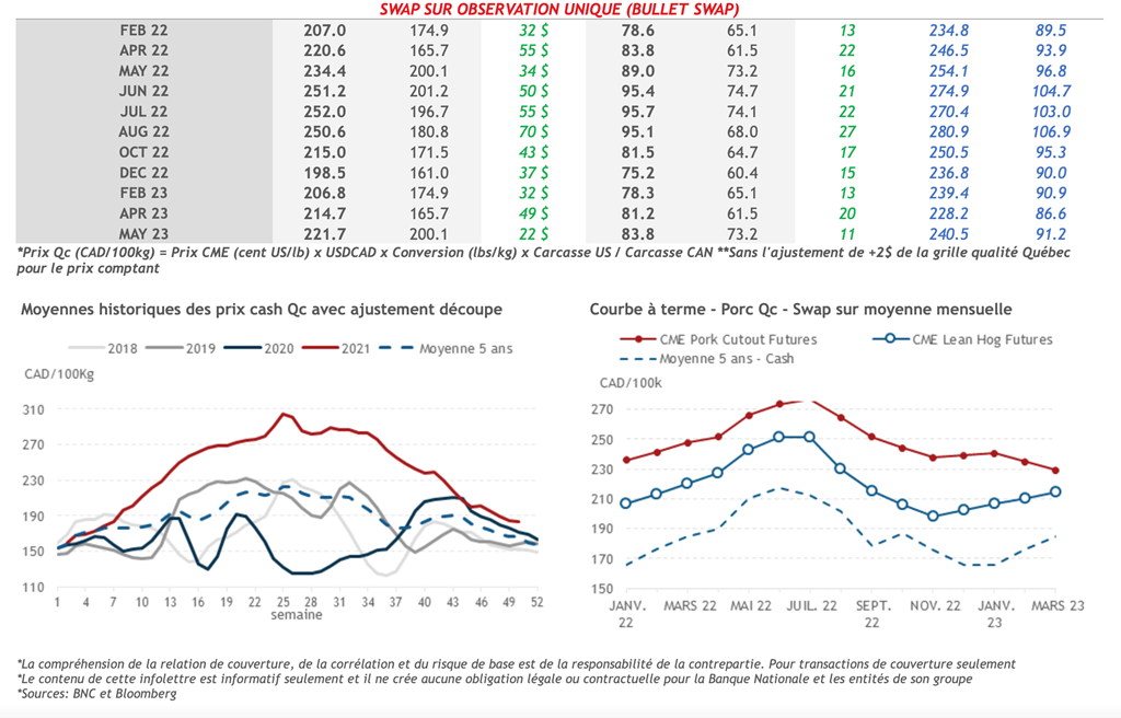 • L’indice de découpe de porc américaine a suivi une tendance similaire, inscrivant une perte de 1,55 cents US/lb. L’indice s’est établi à 85,48 cents US/lb, sous l’influence de la longe qui a perdu 5,54 cents US/lb.
