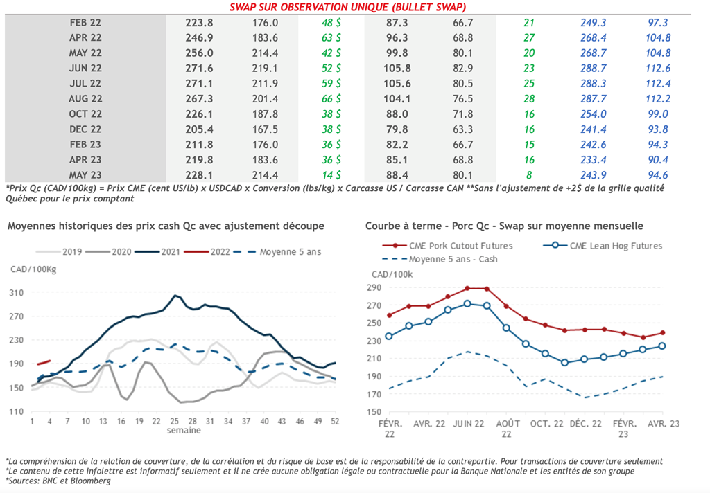 • À l’opposé, l'indice de découpe du porc américain a reculé de 3,20 cents US/lb et a clôturé la journée à 92,46 cents US/lb. Le jambon avec une perte de 7,49 US cents/lb est à l'origine de cette baisse. Ce matin, l'indice du porc au comptant est à 72,32 US cents/lb.