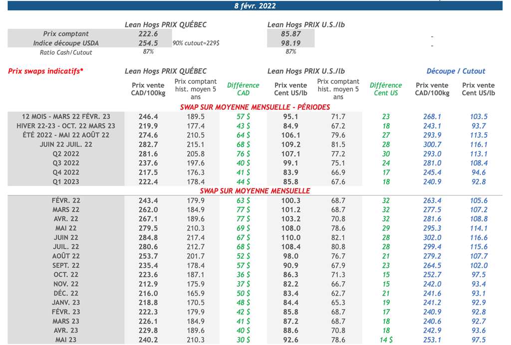 • 10 février : USDA — Ventes nettes d’exportations pour les grains et le porc