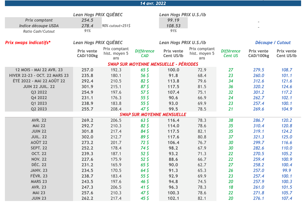 • 14 avril : Rapport hebdomadaire USDA sur les exportations nettes de vente