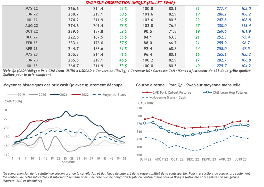 • 12 mai : USDA — Ventes nettes d’exportations pour les grains et le porc