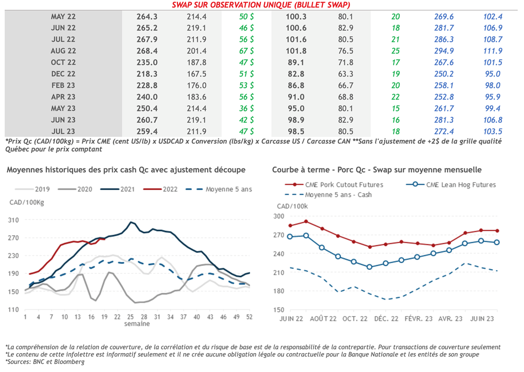 • Les écarts de prix entre les contrats de mai/juin et ceux de juillet/août se sont rétrécis mardi, incitant les producteurs à vendre des porcs prêts à être commercialisés plus tôt dans l'été plutôt que de les conserver pour les vendre à prime quelques mois plus tard.