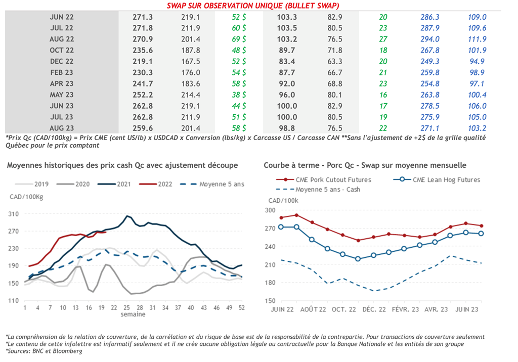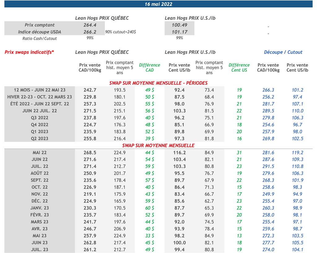 • 19 mai : USDA — Ventes nettes d’exportations pour les grains et le porc