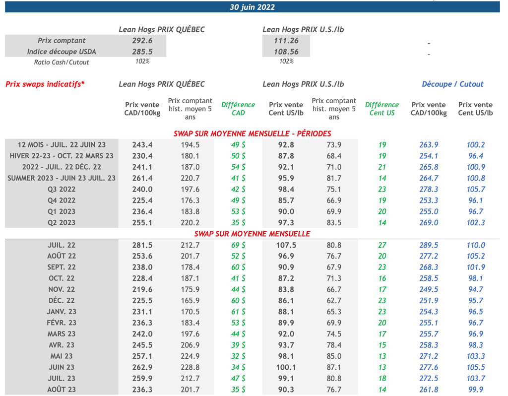 • Selon le rapport de l'USDA publié hier, le cheptel porcin totalisait 72,5 millions de têtes au 1er juin, soit le huitième trimestre consécutif affichant une baisse annuelle.