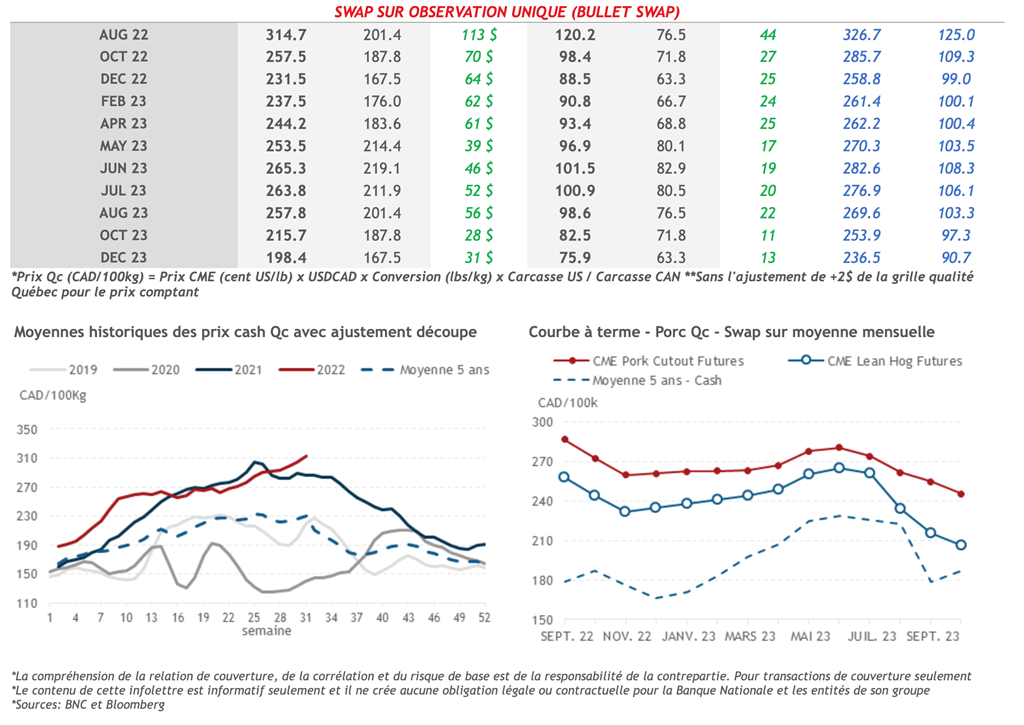 • 11 août : USDA - Ventes nettes d’exportations pour les grains et le porc