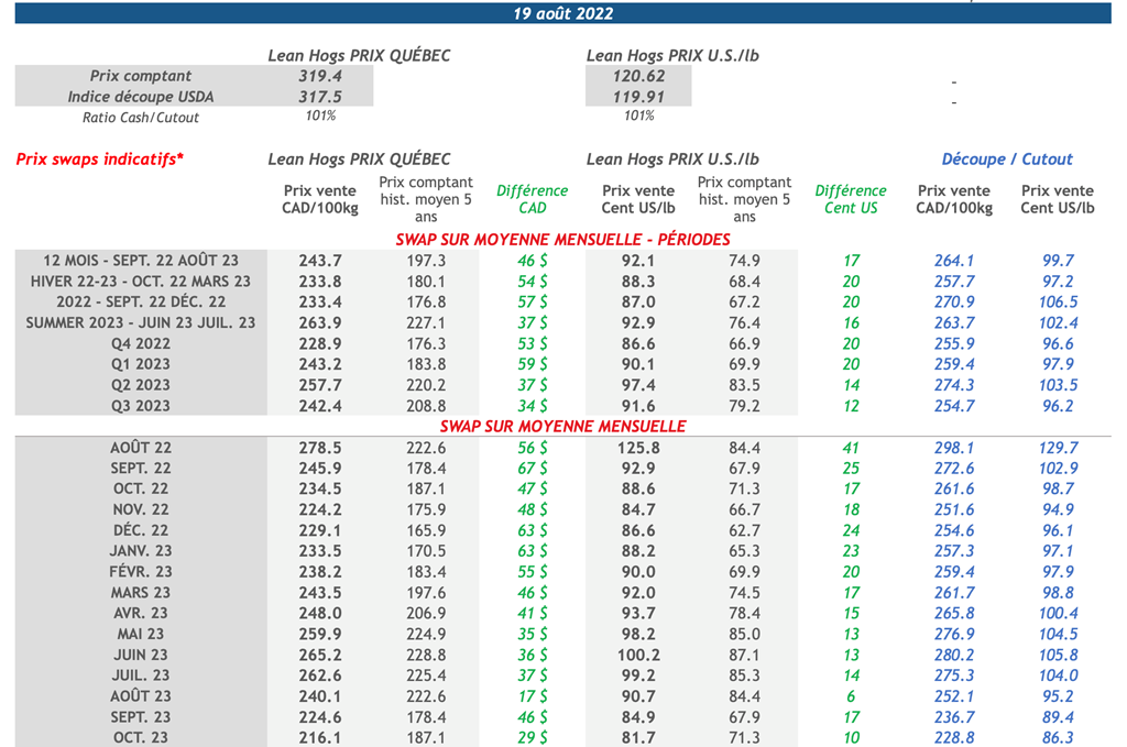 • 25 août : USDA - Ventes nettes d’exportations pour les grains et le porc