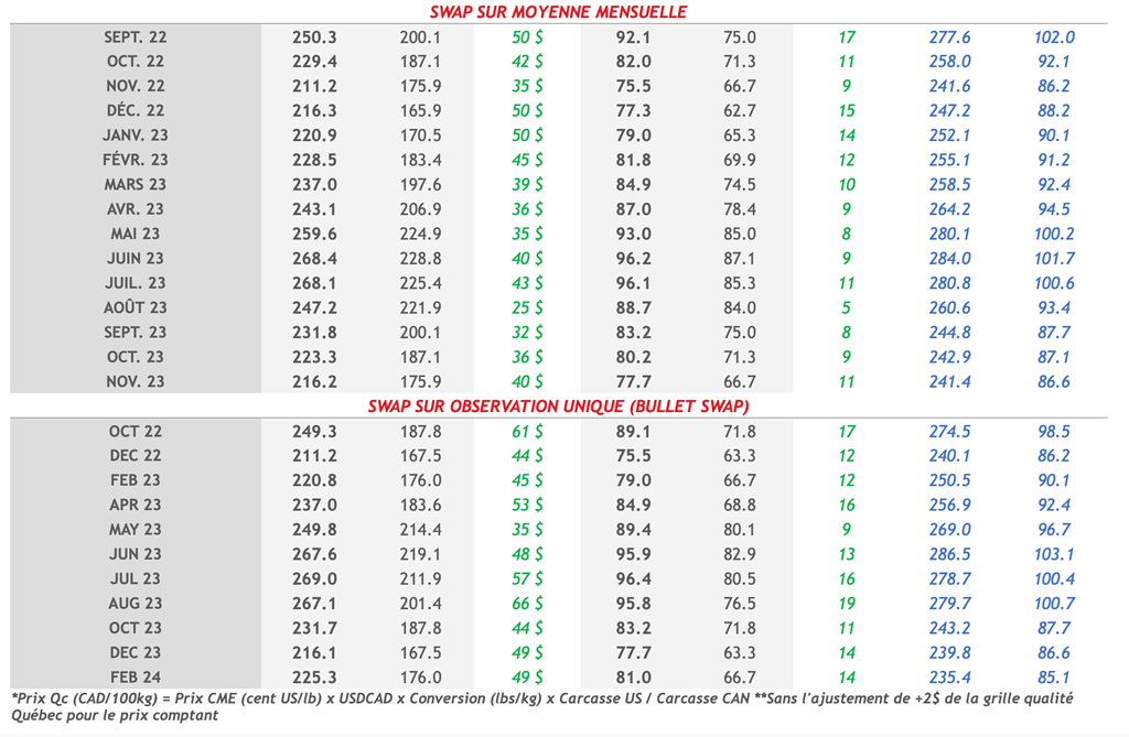• Dans son rapport trimestriel sur les inventaires de porcs, l'USDA a estimé le stock total des États-Unis au 1er septembre à 73,8 millions de têtes, soit une baisse de 1,4 % par rapport à la même date en 2021 et une baisse supérieure aux prévisions de 0,8 %. Les porcs de reproduction au 1er septembre totalisaient 6,152 millions de têtes, soit une baisse de 0,6 % par rapport aux 6,19 millions de têtes de l'année précédente.