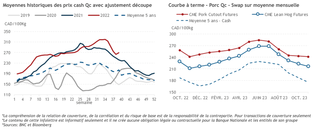 • L'indice du porc au comptant CME a poursuivi sa récente tendance à la baisse et a enregistré une perte de 0,81 cent US/lb à 95,60 cents US/lb. La découpe du porc américain a également baissé, de 1,97 cents US/lb à 98,80 cents US/lb, tiré par le flanc.