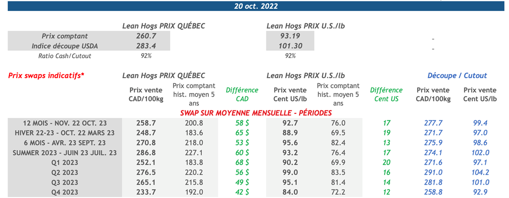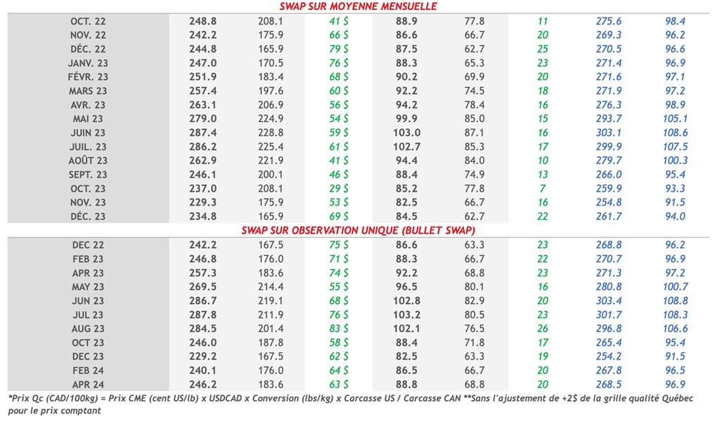 • Hier était une autre journée à la hausse pour les prix des contrats de porcs avec des gains autour de 1 cent US/lb jusqu'à juillet-23.