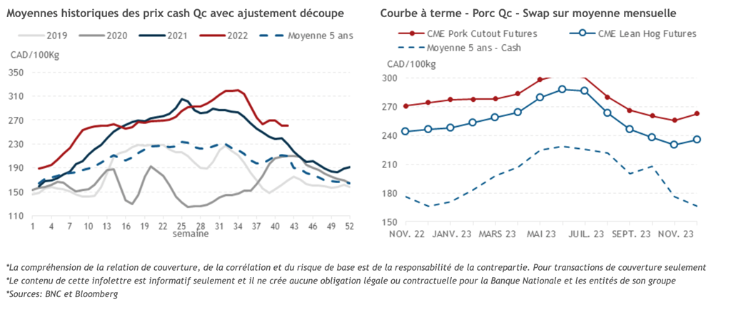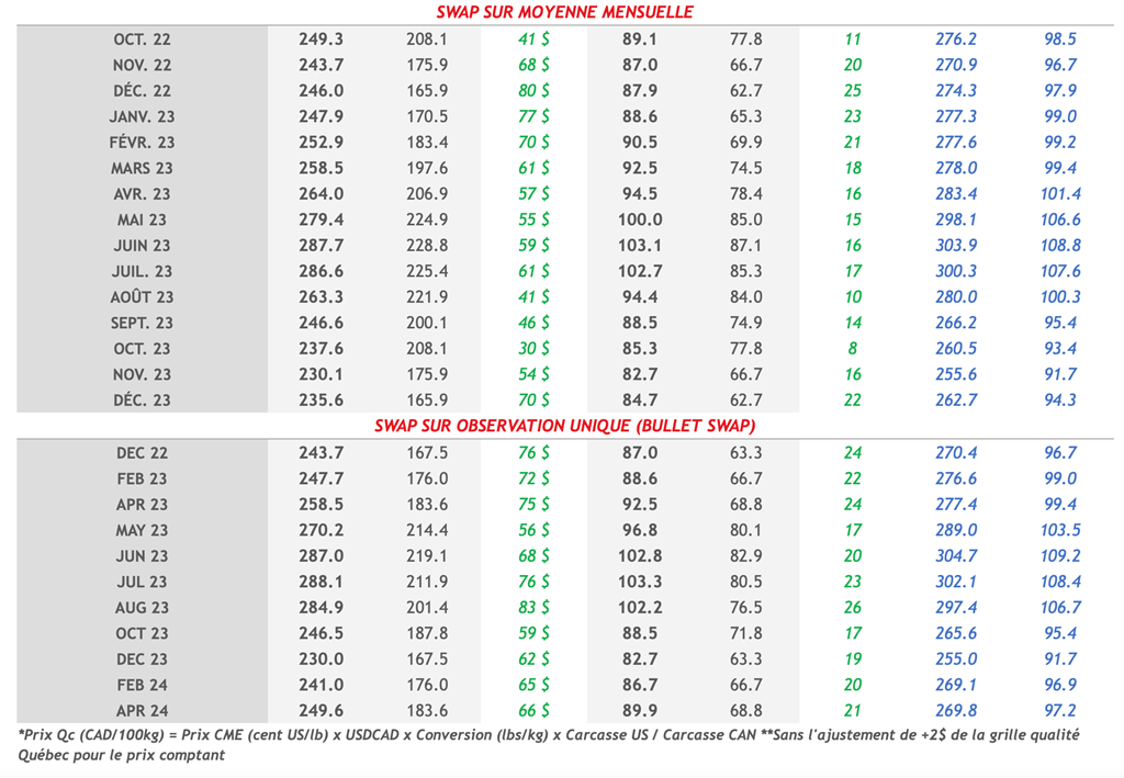 • L'indice au comptant du porc CME est resté presque inchangé sur la journée. La récente reprise des contrats a réduit le niveau de la base avec le comptant, mais reste un peu plus large que la normale. La découpe du porc américain s'est dépréciée de 1,37 cents US/lb pour atteindre 101,30 cents US/lb en raison d’une baisse de la valeur du flanc.