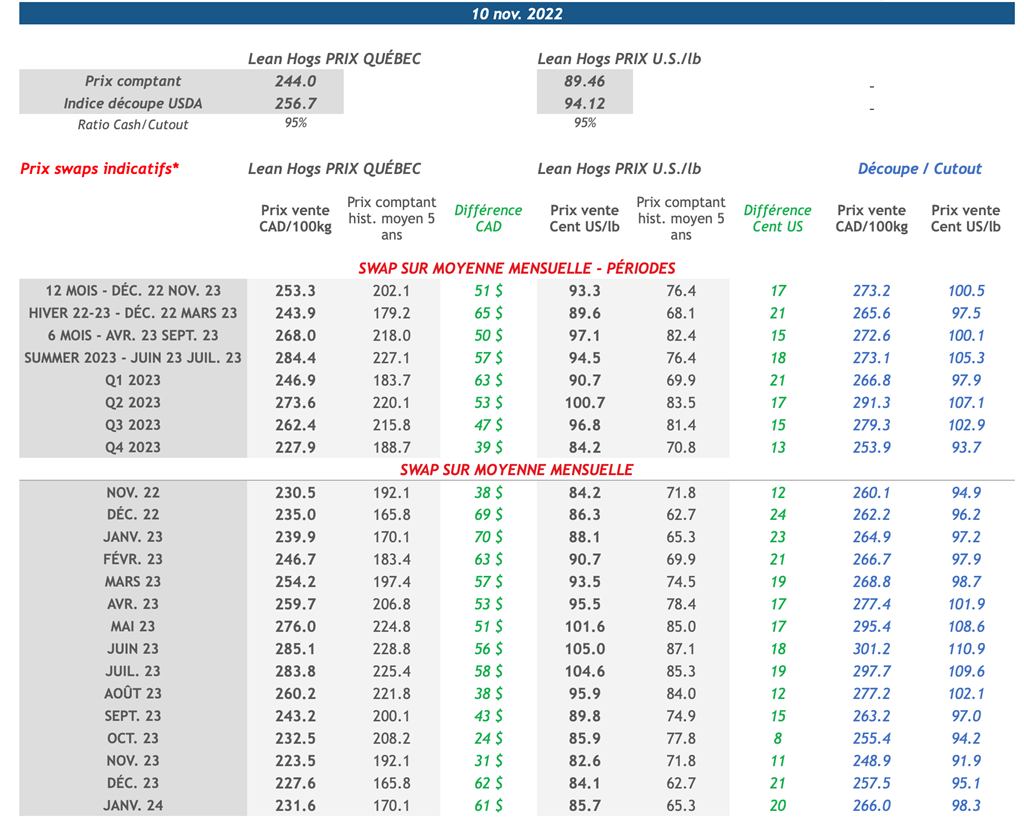 • 17 novembre: USDA - Ventes nettes d’exportations pour les grains et le porc