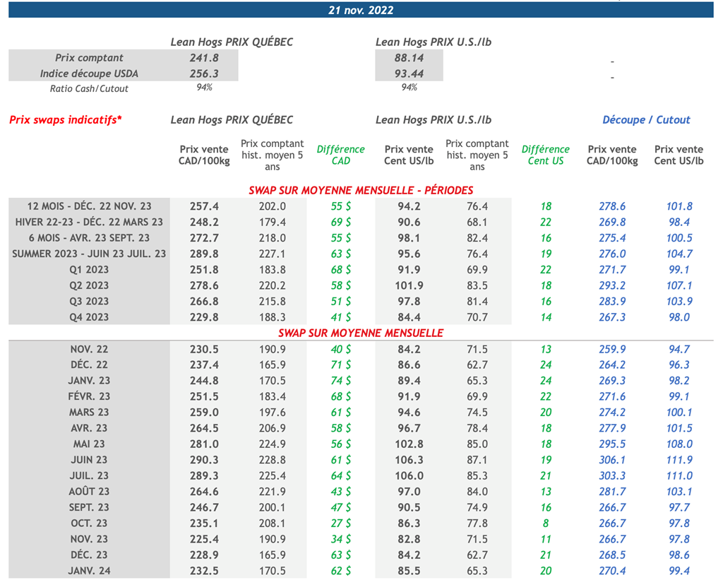 • 25 novembre: USDA - Ventes nettes d’exportations pour les grains et le porc