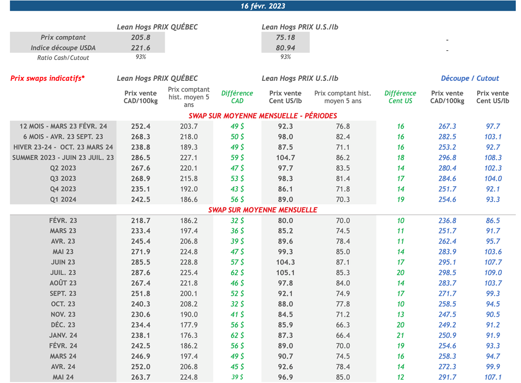 • 24 février : USDA - Ventes nettes d’exportations pour les grains et le porc