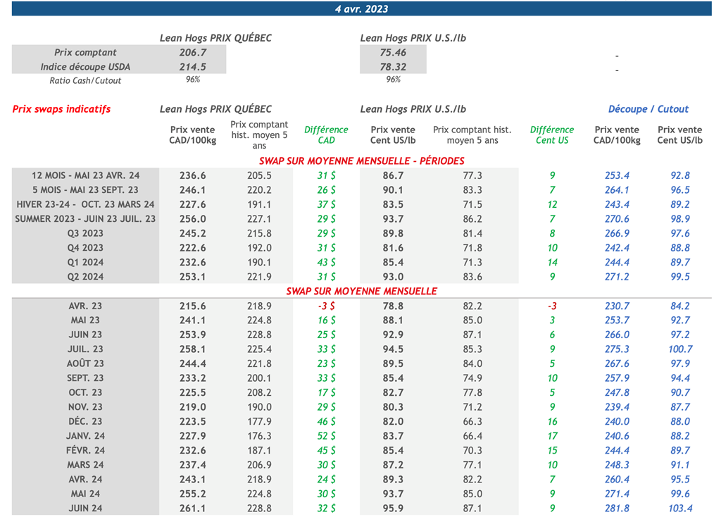• 6 avril : USDA - Ventes nettes d’exportations pour les grains et le porc