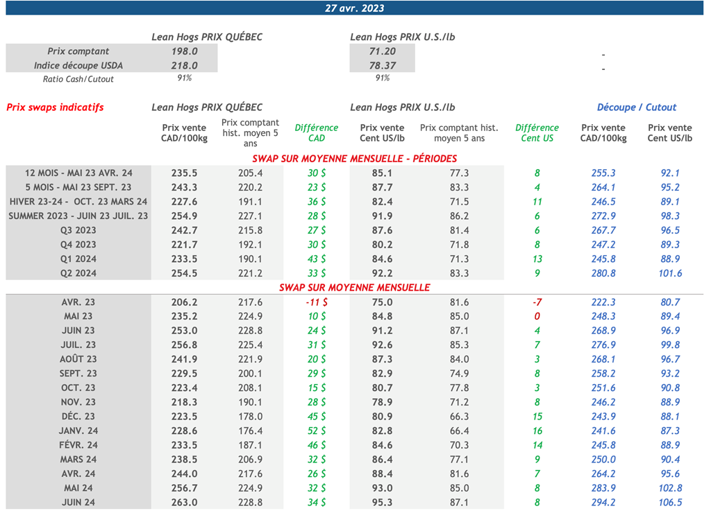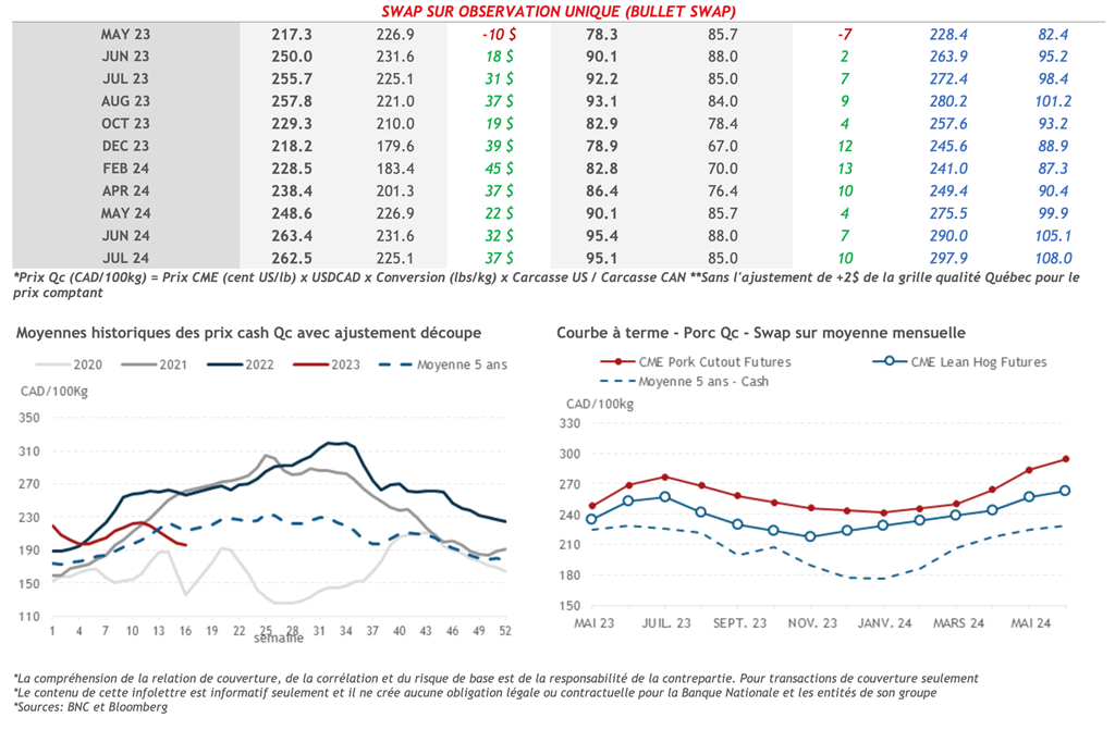 • 4 mai : USDA - Ventes nettes d’exportations pour les grains et le porc