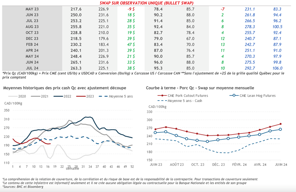 • 4 mai : USDA - Ventes nettes d’exportations pour les grains et le porc