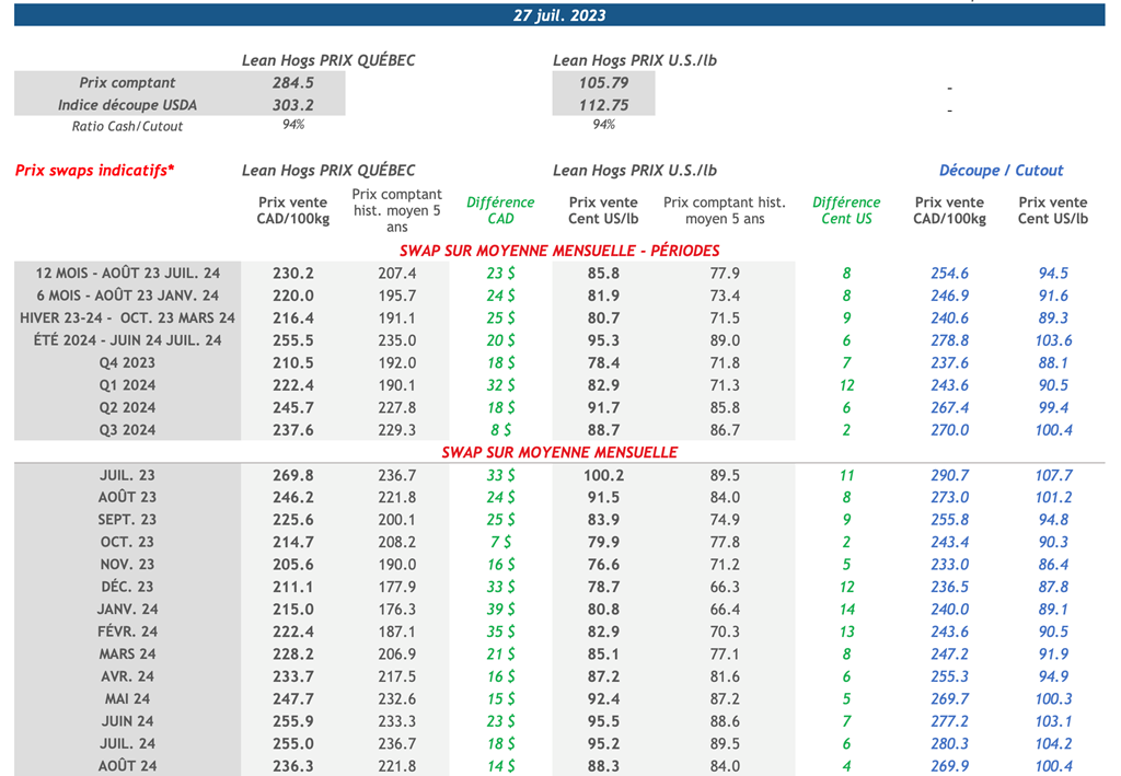 • 3 août : USDA - Ventes nettes d’exportations pour les grains et le porc