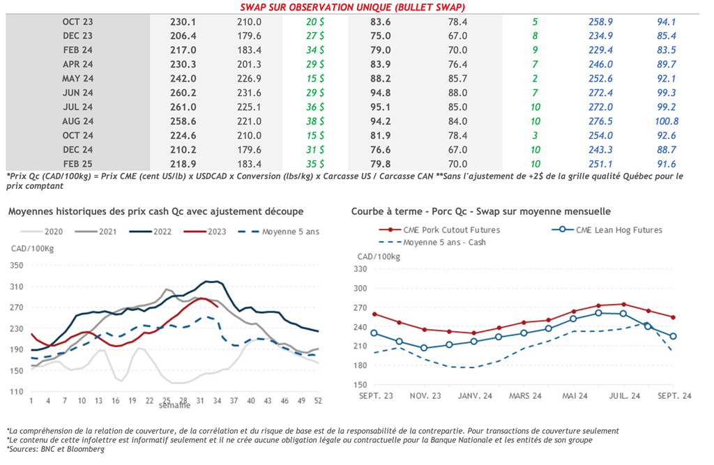 • 8 septembre: USDA - Ventes nettes d’exportations pour les grains et le porc
