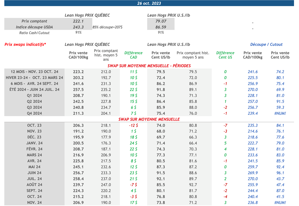 • 2 novembre: USDA - Ventes nettes d’exportations pour les grains et le porc