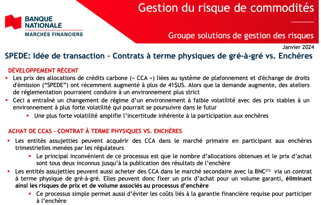 Voici un document sur les crédits carbone (SPEDE) - Contrats à terme physiques de gré-à-gré (marché secondaire) vs. Enchères