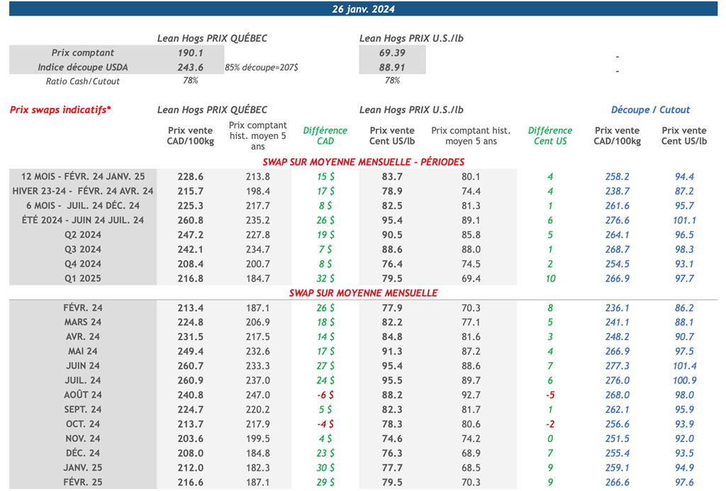 Prix swaps indicatifs - Porc - Banque Nationale