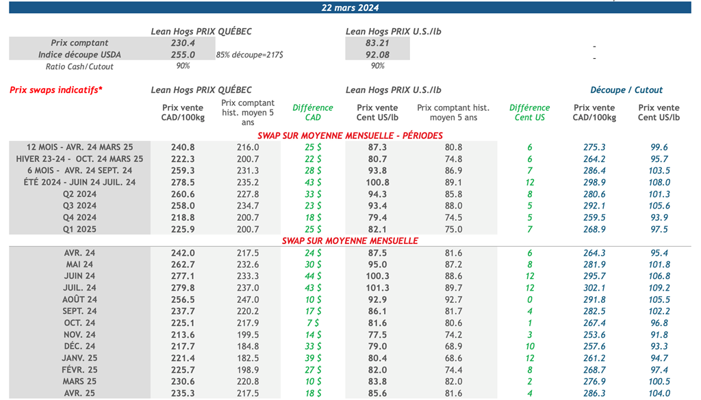 • 28 mars: USDA - Ventes nettes d’exportations pour les grains et le porc