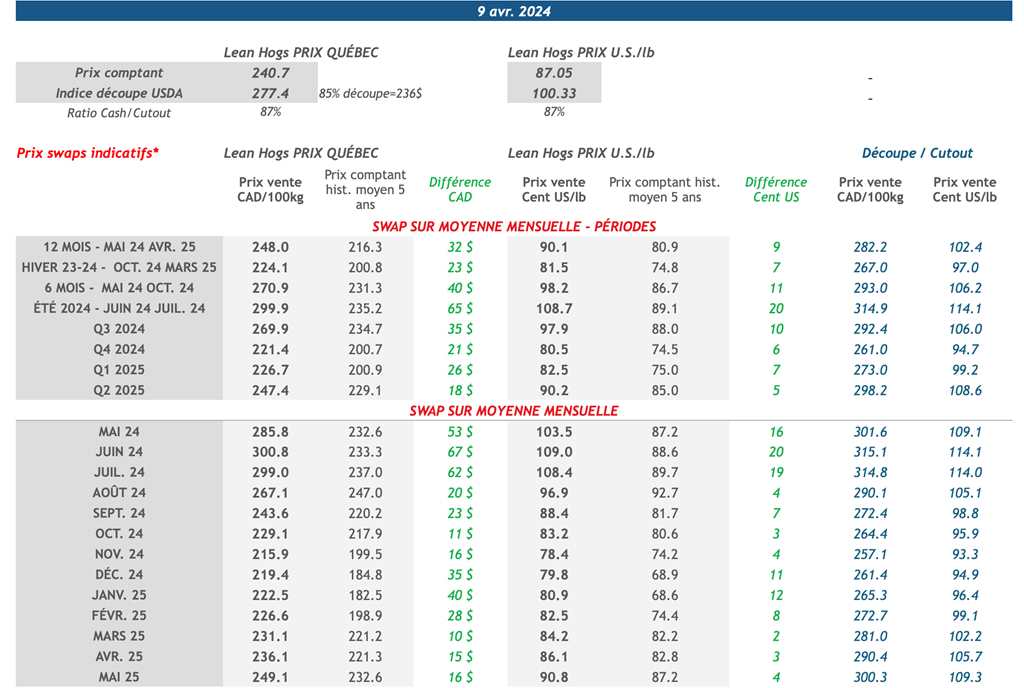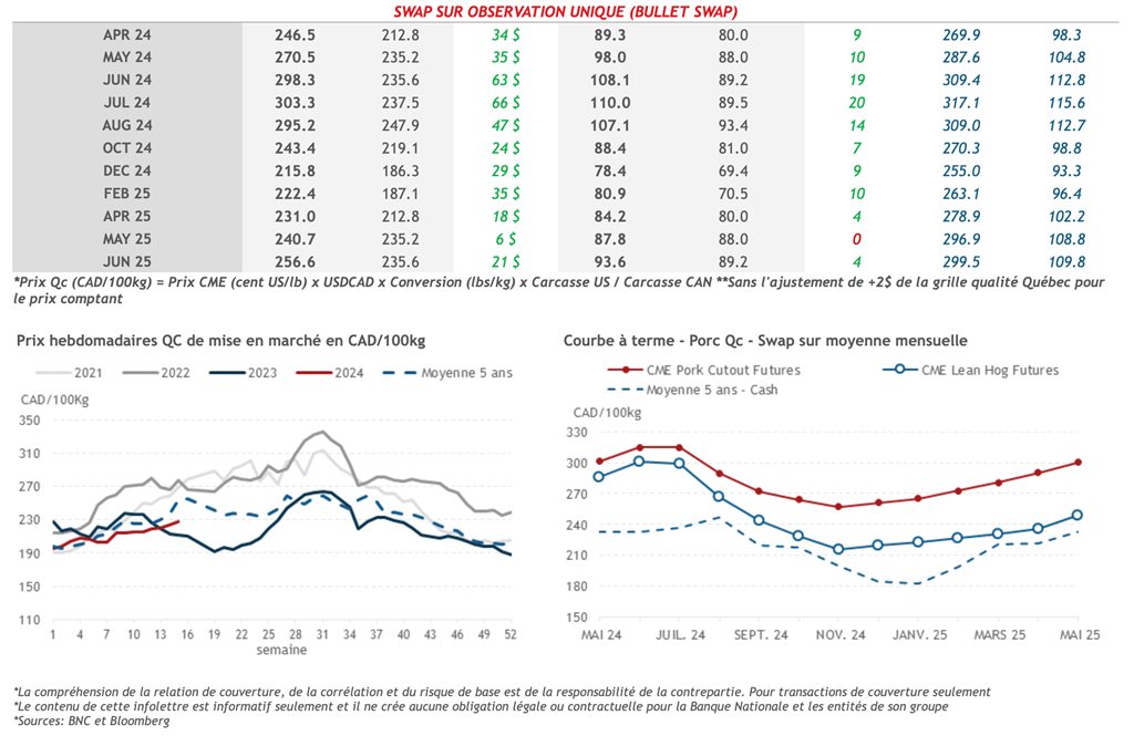 • 11 avril USDA - Ventes nettes d’exportations pour les grains et le porc