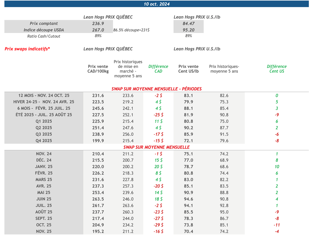 • 17 octobre: USDA - Ventes nettes d’exportations pour les grains et le porc
