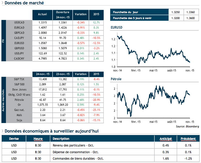 Côté publications économiques, les États-Unis clôtureront le tout avant de célébrer l’Action de grâce avec une panoplie de nouvelles incluant les revenus et dépenses des particuliers ainsi que les nouvelles demandes de prestations de chômage.