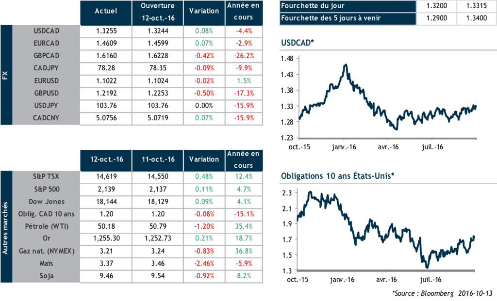 Ce matin, les valeurs refuges ont encore la cote, alors que la Chine a publié des données d’exportation franchement décevantes. Une nouvelle vague d’incertitude en provenance de la Chine pourrait favoriser le USD. Dans ce contexte, le USDCAD pourrait sortir de sa récente fourchette. Restez vigilants.