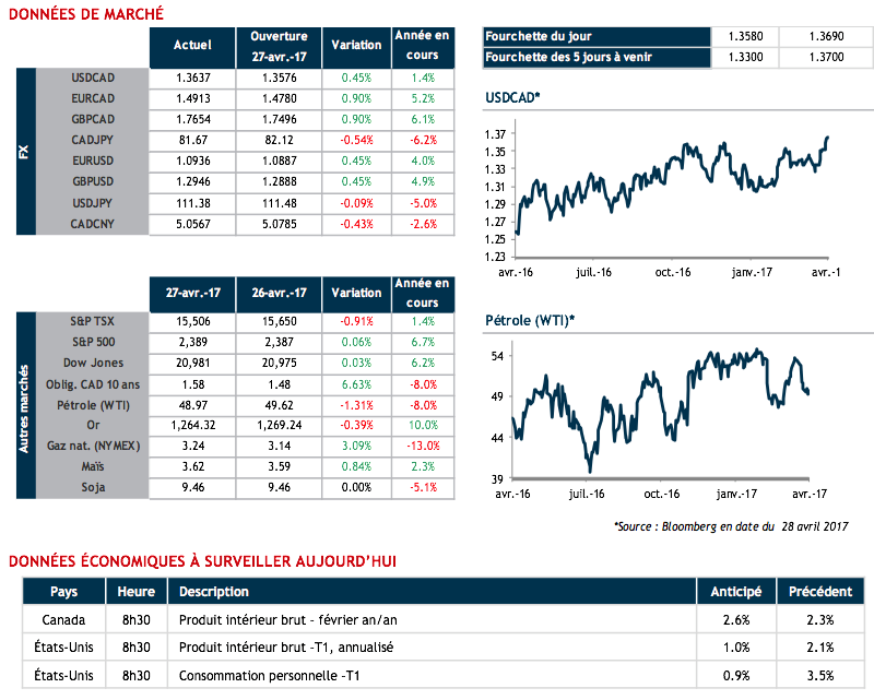 Quant à savoir si notre devise continuera de perdre des plumes, force est d’admettre que le contexte actuel y semble favorable. La publication ce matin à 8h30 des données sur la croissance économique au Canada et aux États-Unis pourrait nous donner un premier indice.
