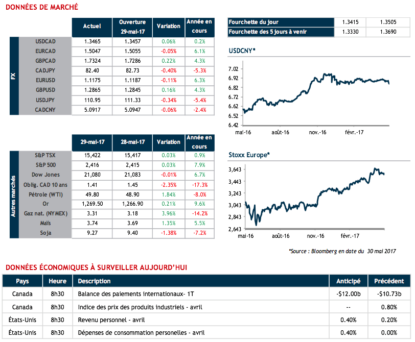 Ce matin à 8h30 le Canada publiera le solde de son compte courant au premier trimestre tandis que les États-Unis feront le bilan des dépenses et revenus des particuliers.