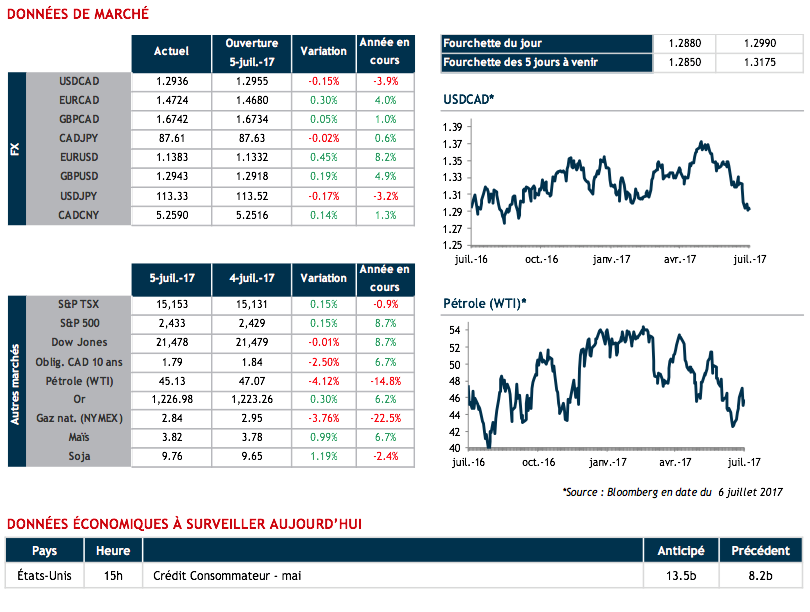Nous avons eu de belles surprises au niveau de l’emploi vendredi dernier et ce, autant au Canada qu’aux États-Unis. Dans le premier cas, l’ajout de 45 300 postes en juin sera venu compléter l’anticipation d’une première hausse de taux depuis le 8 septembre 2010 au pays ce mercredi et ce, nonobstant que 37 100 d’entre eux étaient à temps partiel. Quant à nos voisins, l’ajout de 222 000 travailleurs pour la même période et le constat du retour sur le marché du travail de plusieurs « découragés » ne sera pas parvenu à éclipser l’absence de pressions à la hausse sur les salaires.