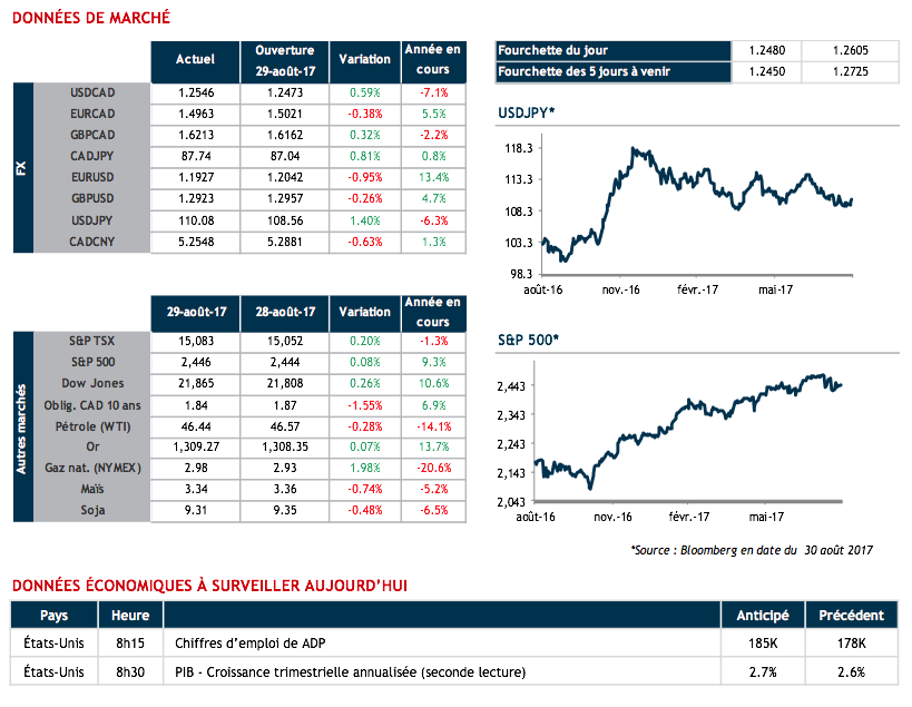 Dans ce contexte, nous encourageons les vendeurs de dollars américains à placer des commandes, surtout avant les chiffres économiques importants de demain (PIB canadien) et de vendredi (emploi américain).
