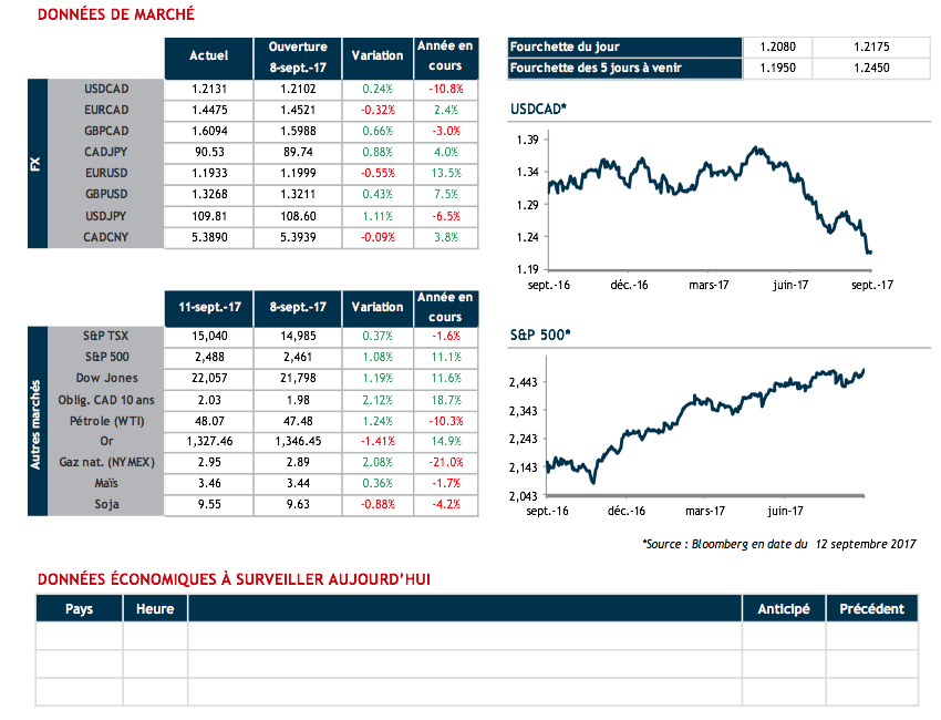 Durant la session d'hier, nous avons pu observer le retour de l'appétit pour le risque dans les marchés en général. Le S&P500, le Dow Jones et le Nasdaq ont tous augmenté de plus de 1%, tandis que les actifs refuges tels que l'or, le Yen japonais et les bons du Trésor américains ont connu un revers important. Les craintes liées à l'ouragan Irma et à la Corée du Nord se sont estompées, ce qui a nourri la demande pour le risque. En effet, les investisseurs ont célébré la perte de puissance de l'ouragan Irma, qui est maintenant classé comme tempête tropicale. Les estimations des dégâts ont été revues à la baisse de 200 à 49 milliards USD. Bien que la Corée du Nord soit restée tranquille lors des célébrations de l'anniversaire de sa fondation, les Nations Unies ont unanimement adopté de nouvelles de sanctions envers elle notamment l’interdiction d’exporter du textile.