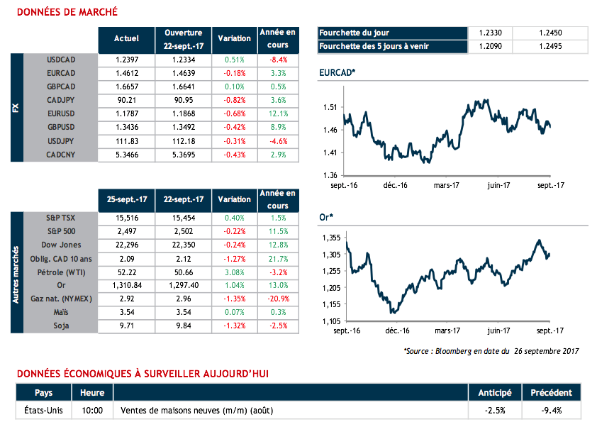 Plus près de nous, le président de la Réserve fédérale américaine (Fed) du district de Chicago, Charles Evans, a annoncé plus tard en après-midi que les changements technologiques actuels ne sont pas transitoires et que la faiblesse de l’inflation pourrait bien être structurelle. Toutefois, la faible hausse des prix ne semble pas être un frein à la croissance de l’économie américaine pour le moment. Sur un fonds d’aversion pour le risque et de tensions avec la Corée du Nord, l’USD, le CHF et le JPY ont clôturé la journée dans le vert.