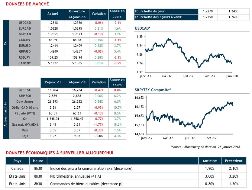 Aujourd’hui plusieurs données économiques sont attendues aux États-Unis (PIB et commandes de biens durables) et au Canada (inflation). Peut-être que de bonnes nouvelles économiques américaines sauront ralentir la chute du billet vert.