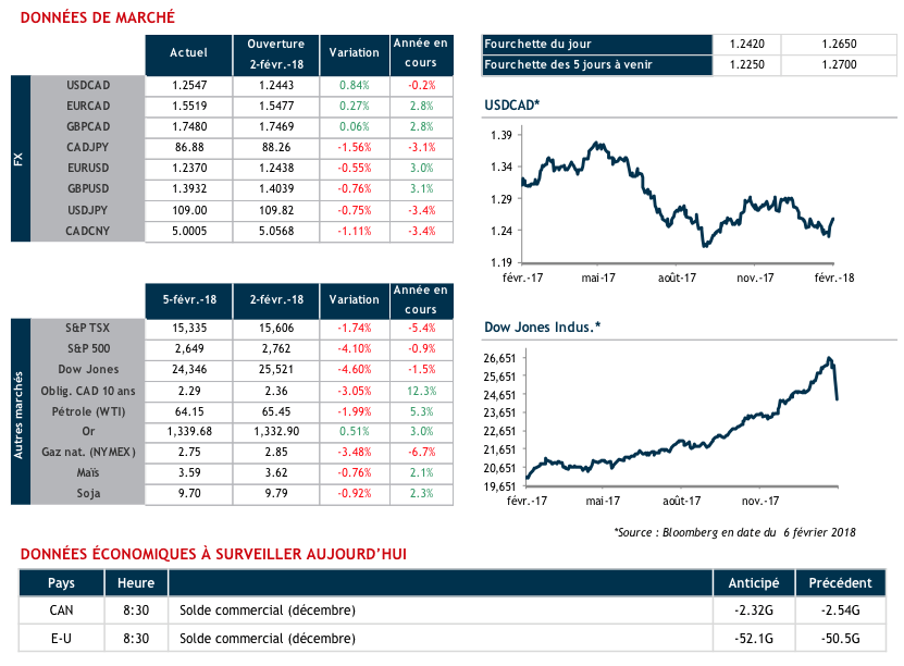 Aujourd’hui, le marché se tourne vers les balances commerciales du Canada et des États-Unis qui seront publiés à 8h30… s’il parvient à détourner son regard des indices boursiers.