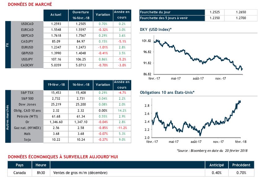 Aucune nouvelle économique d’importance n’est prévue aujourd’hui au Canada et aux États-Unis. Le prix du pétrole brut est actuellement en hausse alors que le dollar canadien et l’euro sont en recul face au billet vert.