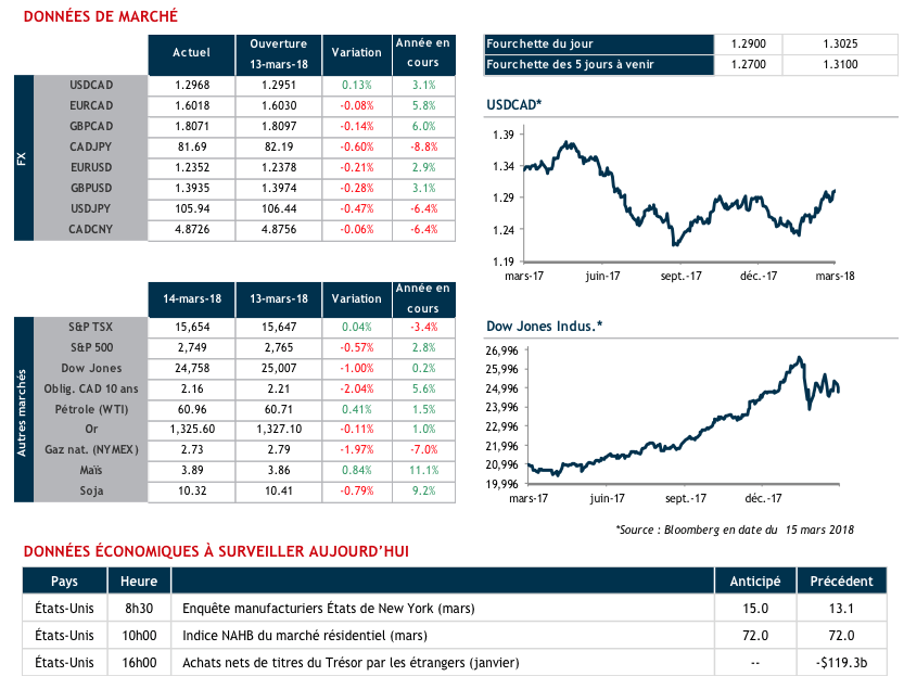 Les bourses ont accusé une seconde journée de perte mercredi alors que la rhétorique protectionniste s'est poursuivie à Washington, en plus des ventes au détail décevantes en février. En effet, selon plusieurs médias américains, le président Trump considère imposer des tarifs sur près de 60 milliards de biens en provenance de la Chine.