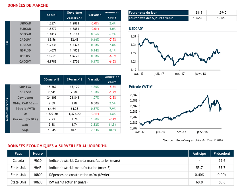 Tandis que certains poursuivent leur congé pascal, c’est un billet vert sous pression qui nous accueille ce matin ainsi que la perspective d’une autre session difficile pour l’indice NASDAQ. Encore ce week-end, le président Trump s’est attaqué au géant du commerce en ligne Amazon déclarant que ce dernier devra défrayer les véritables coûts et impôts liés à ses opérations. Selon une analyse « trumpienne » de source inconnue et non validée, le service postal américain perdrait 1.50$ par colis expédié...