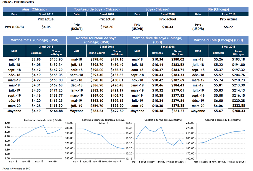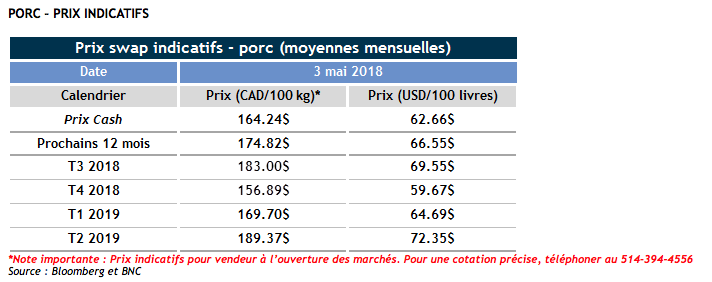 Voici les dernières nouvelles sur le marché des grains et du porc :